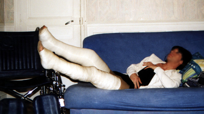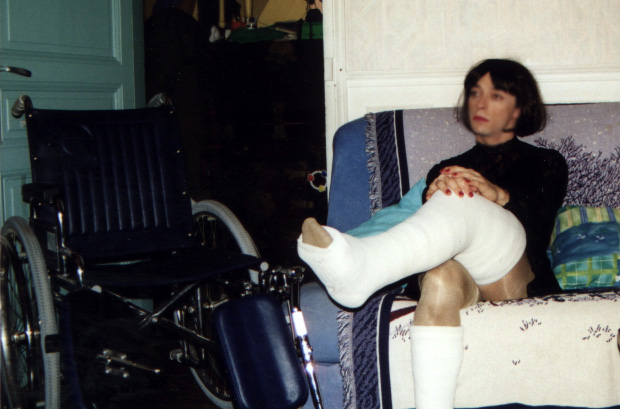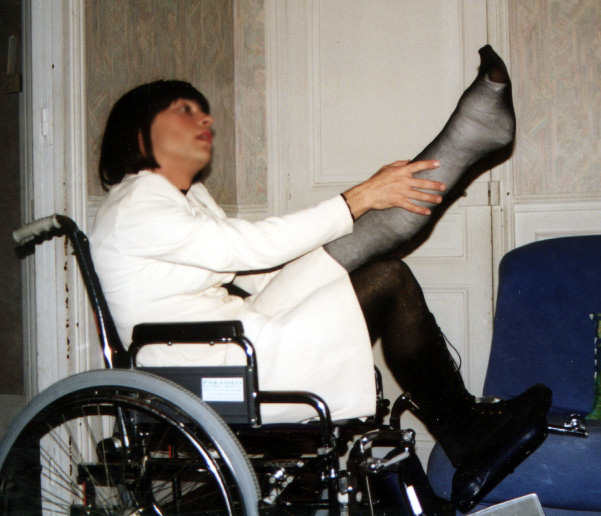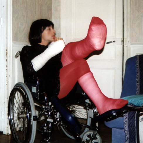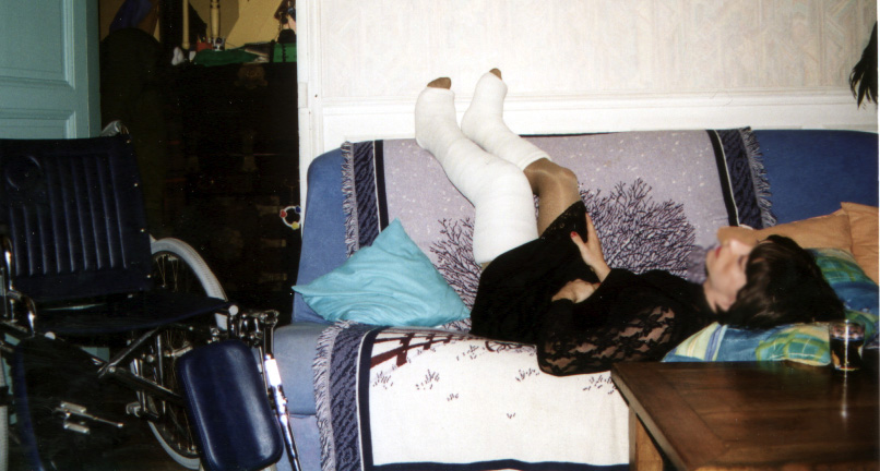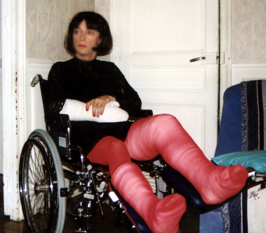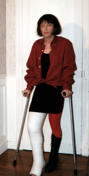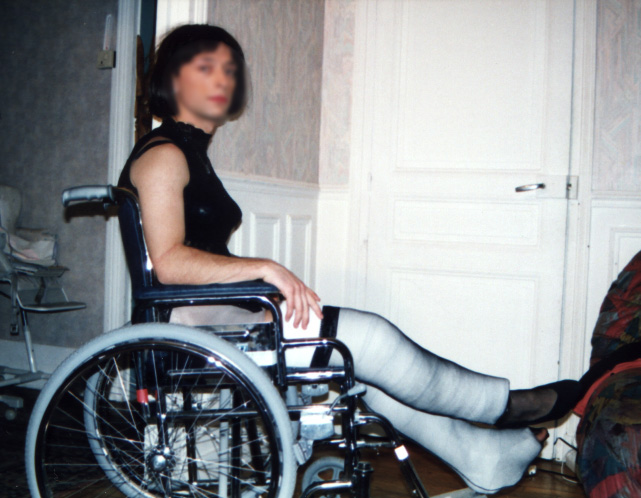 (bien sûr en homme, je n'ose pas encore sortir en femme), avec un platre
